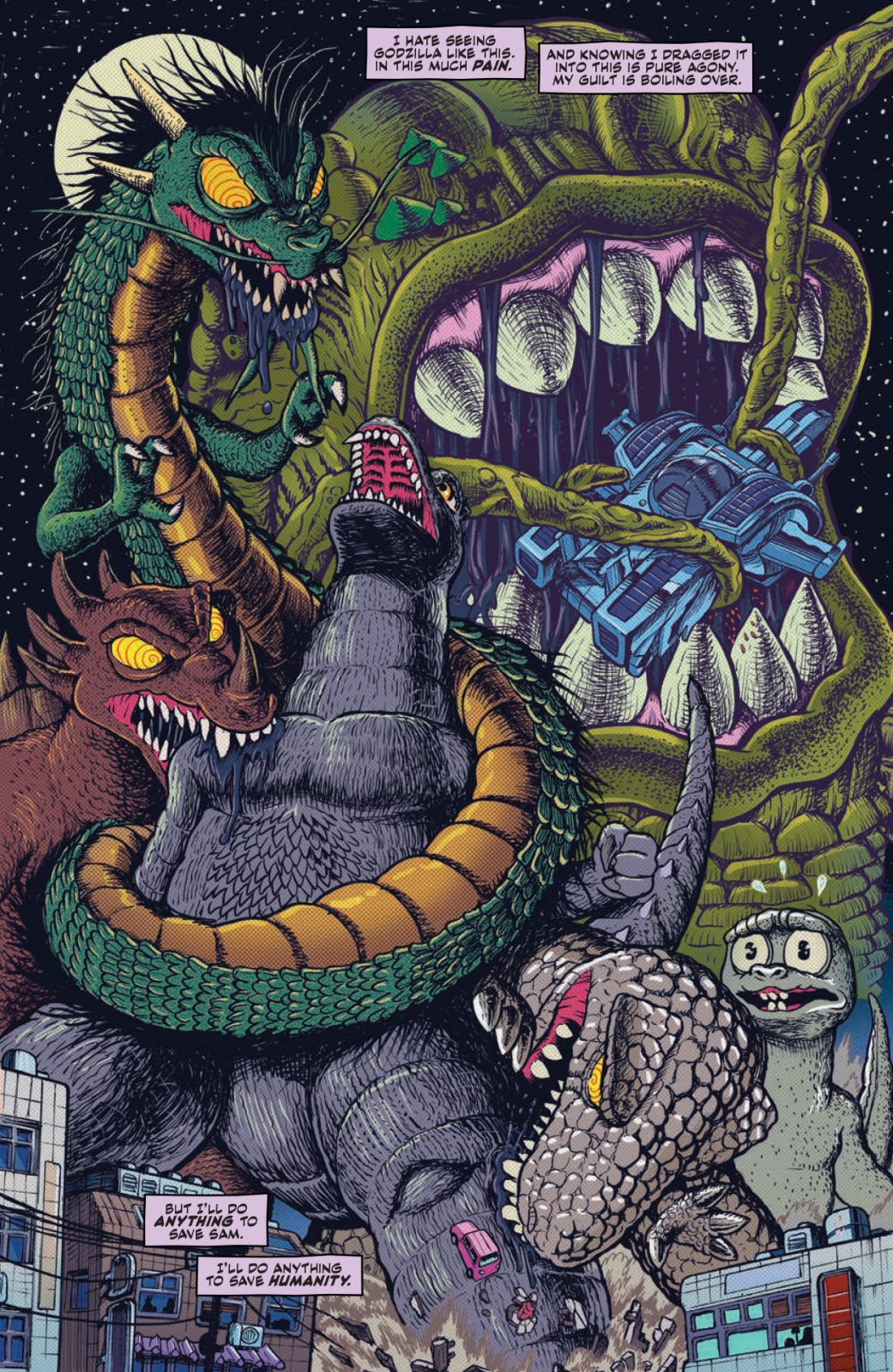 Godzilla alone?! Zoospora continues to spread its roots across the world, and with the kaiju task force nearly out of commission and Godzilla the only one left standing against an army of monsters, it looks like humanity is doomed! In a last-ditch effort, Yuko and Samantha begin to search for Zoospora’s source and any clue to defeating the seemingly unstoppable monster!