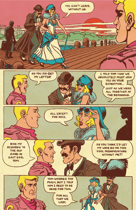 The roar of the twenties escalated to a mighty SKREONK as Godzilla attacked the party of the wrong man and hurt the wrong lady. Now Jay Gatsby has enlisted the help of SHERLOCK HOLMES, THOMAS EDISON, JULES VERNE, THE TIME MACHINIST, and more to put an end to the Godzilla threat once and for all.