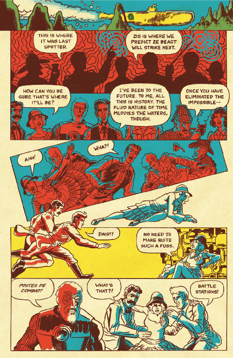 Watch as our new team travels twenty thousand leagues under the sea and turns Paris into the ultimate Godzilla trap in this thrilling feat of cartooning by the unrivaled Tom Scioli.