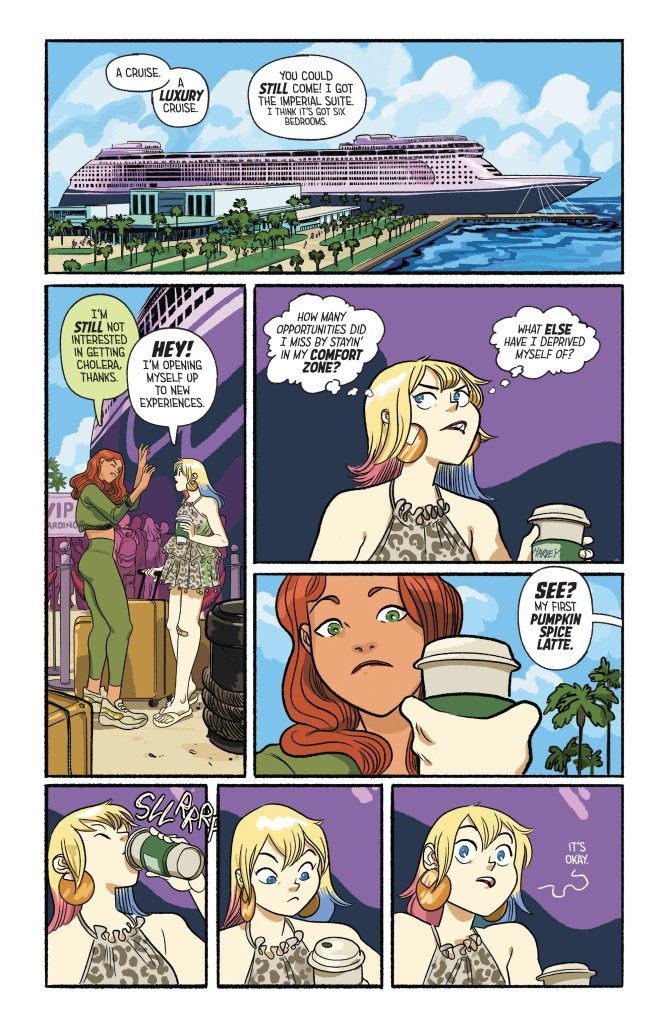 Toot toot! Ladies and germs, don’t you just hate it when you bust your butt left and right with no reward? Whether you’re devoted to a life of heroism, villainy, or regular-person-ism—everyone needs a break. Which is where the HARLEY QUINN 2024 ANNUAL comes in! 40 pages of luxurious luxury cruise-based comedy guaranteed to leave you feeling rested, relaxed, and READY TO FRICKING SOLVE A MARITIME MURDER MYSTERY. When Zatanna gets framed for a mystery on a cruise ship, ol’ Shamluck Harley is on the case!