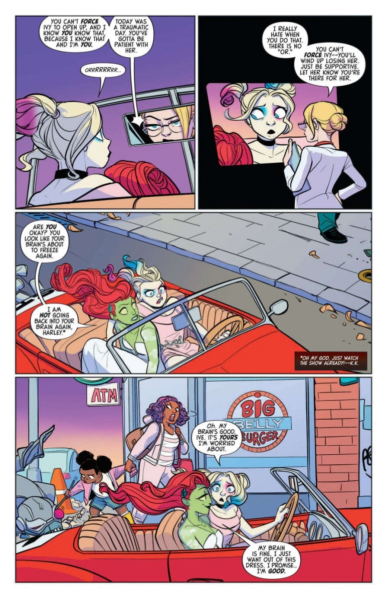 Picking up directly from the cliffhanger ending of Harley Quinn: The Animated Series, Harley and Ivy are on the run after narrowly escaping Ivy’s ill-fated wedding to Kite Man. But who is chasing them, and where will this Thelma-and-Louise journey end? It all starts here!