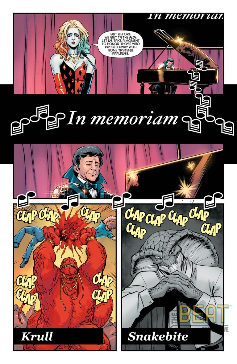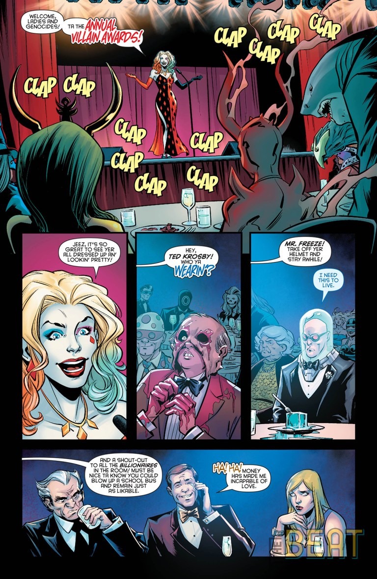 The villains of the DC Universe are gathering this week for the biggest night in the criminal calendar with the release of Harley Quinn’s Villain of the Year, and you can chekc out a preview of the issue here courtesy of ComicsBeat…