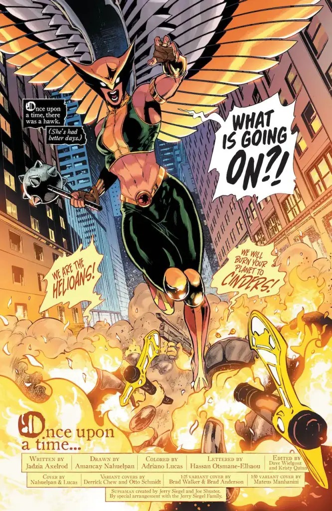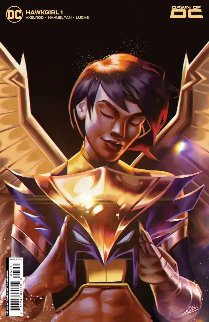 SOARING TO NEW HEIGHTS AND BATTLING NEW FOES! Kendra Saunders, the winged warrior better known as Hawkgirl, has been one of the DCU’s greatest heroes for a long time, serving as a member of both the Justice League and the Justice Society. But with the Justice League disbanded, Kendra decides she needs a fresh start and heads to Metropolis to begin a new life. That life is quickly interrupted by a mysterious villain with a powerful connection to the Nth metal that makes up Hawkgirl’s wings and weapons. A brand-new adventure with sky-high action, adventure, and intrigue begins here by Jadzia Axelrod (GALAXY: THE PRETTIEST STAR) and Amancay Nahuelpan (WONDER WOMAN, DETECTIVE COMICS, THE FLASH).