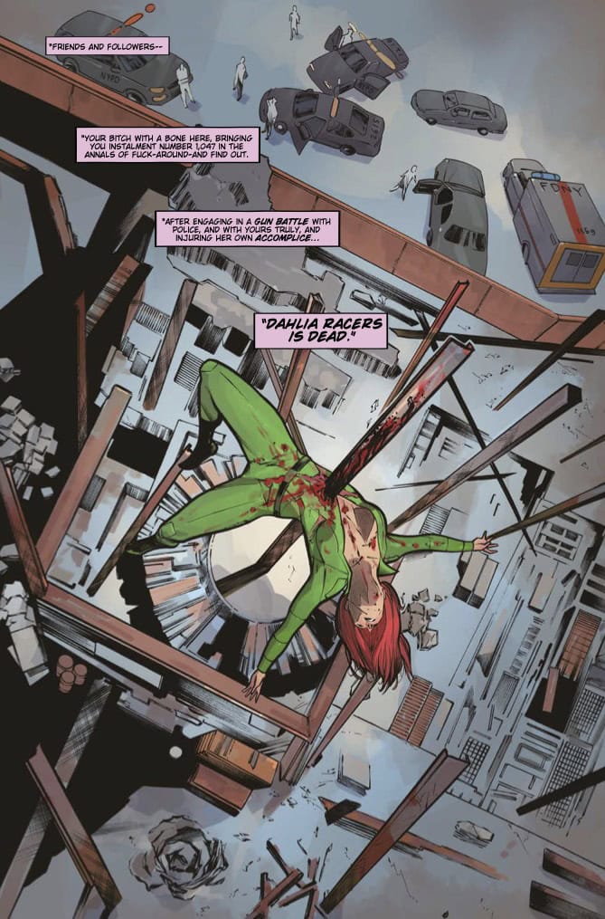 When a relentless investigative reporter threatens to expose her criminal activities, mistress of misdirection Dahlia Racers needs to disappear – from the reporter, the police, and her own former clients who want to silence her… permanently! Gun Honey universe praised by celebrated crime writers ED BRUBAKER, MAX ALLAN COLLINS & DUANE SWIERCZYNSKI!