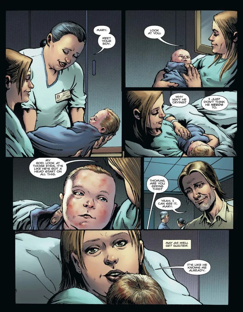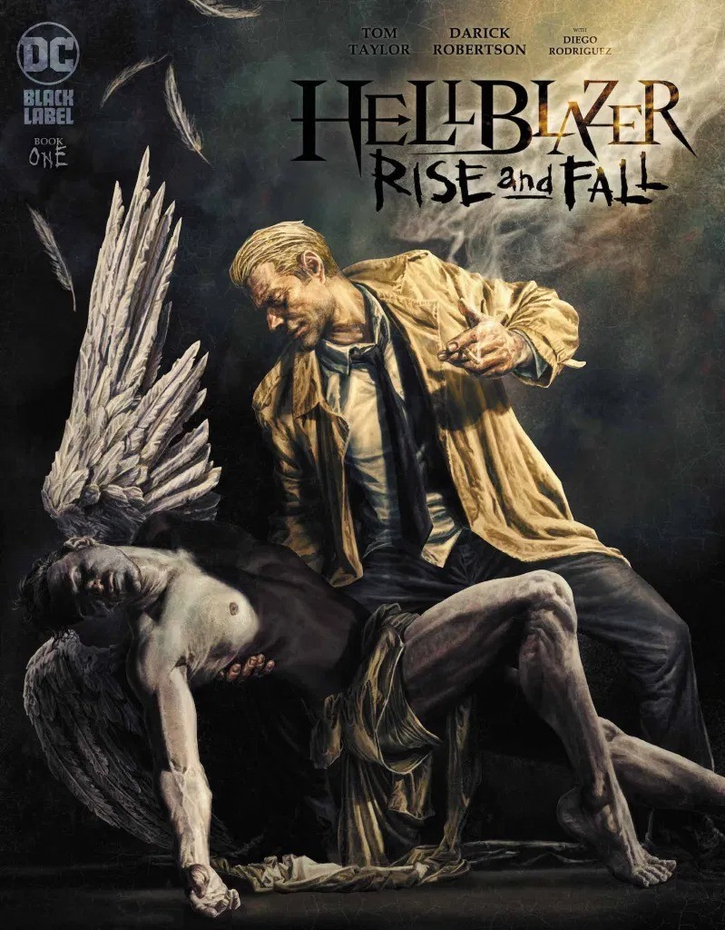 A billionaire falls out of the sky and is gruesomely skewered on a church spire. Bizarrely, Angel Wings are attached to his back. More follow until, hallelujah, it’s raining businessmen. Detective Aisha Bukhari is stumped by this, until she’s visited by her childhood friend, occult investigator John Constantine. DC’s Hellblazer discovers a link between the falling elite and a shocking moment in his and Aisha’s misspent youth. How do these killings tie to the first death on John’s hands? How does this involve heaven and hell? Even if this is kind of John’s fault, will Constantine be happy to let a few more rich bastards fall from the sky, like a vindictive Robin Hood? It’s an all-new DC Black Label mystery starring John Constantine in his very first tale spun by acclaimed writer Tom Taylor (DCeased) and artist Darick Robertson (The Boys)!