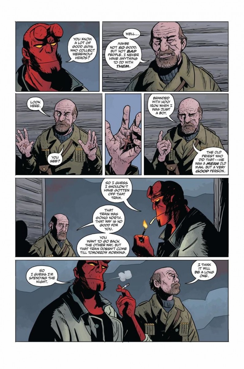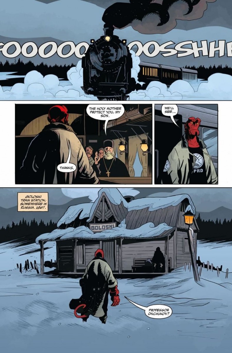 A quiet night at a rundown Russian train station turns into an all-out demon battle for Hellboy when three sinister interlopers pass through. Mike Mignola writes and Matt Smith draws this Western-style supernatural standoff!