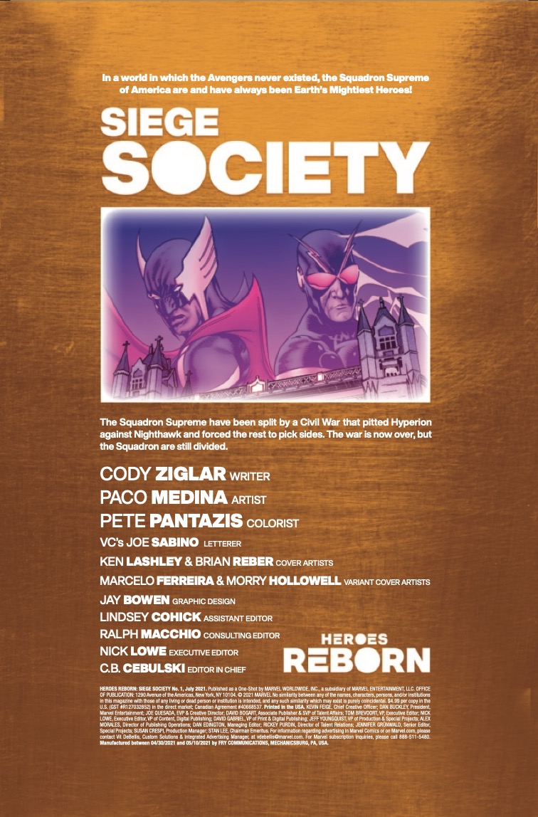 Filed Under: Amie Cranswick, Comic Book Previews, Comic Books Tagged With: Heroes Reborn, Heroes Reborn: Siege Society, Marvel