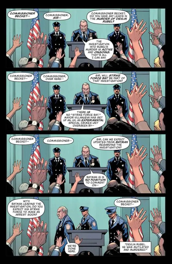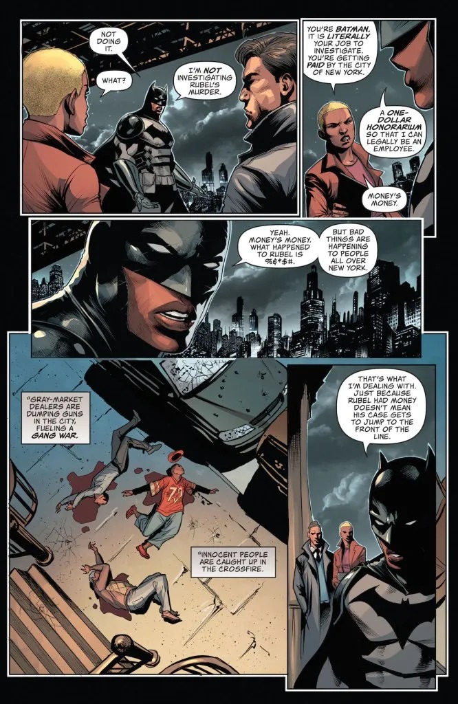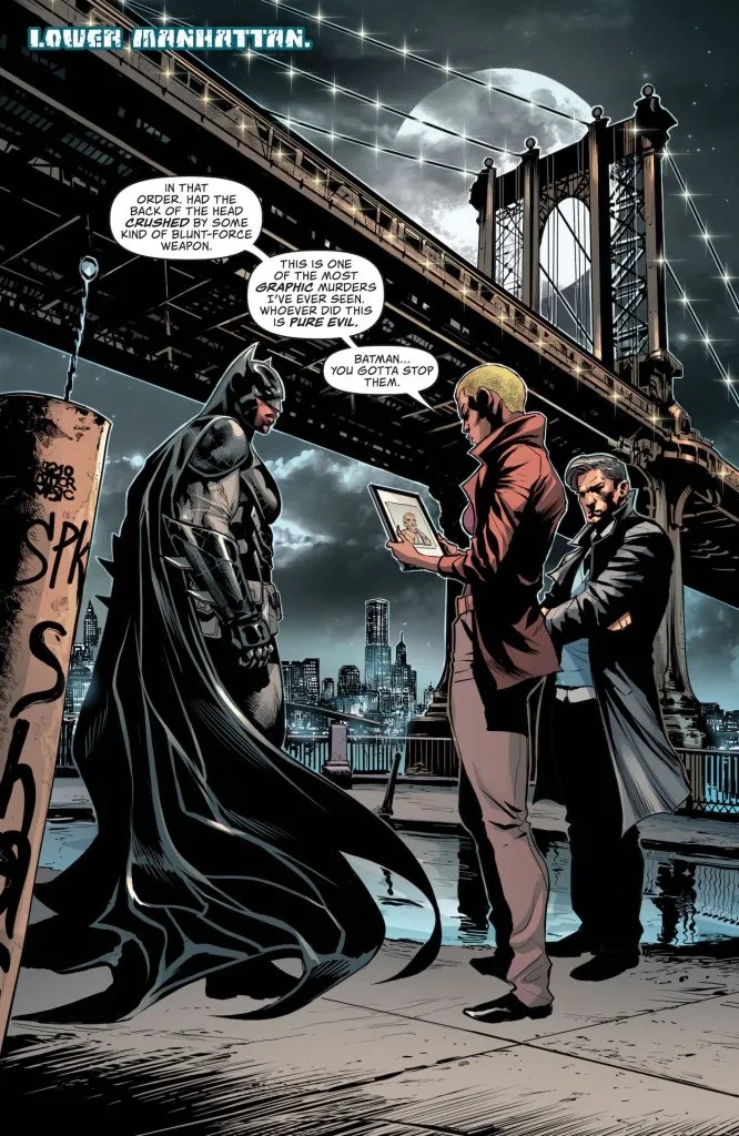 THE DARK KNIGHT COMES TO NEW YORK CITY! Batman’s arrival in New York City went even more smoothly than Jace could have hoped. The mayor and law enforcement are trying to cooperate with their new Dark Knight in ways Gotham never did, and his family has settled quickly into a happy routine. But there’s a rotten core to the Big Apple, and a mysterious new serial killer is going to exploit it…