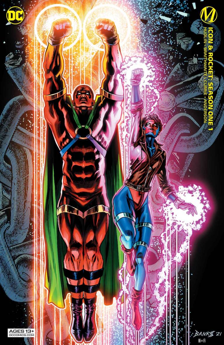 Long ago, the stranded alien known as Arnus gave up hope of returning to his home planet. Tragically, he’d also realized that his adopted home of Earth was beyond saving. Content to waste away his long life in a human guise, Arnus was past caring…until the day a young woman named Raquel Ervin crashed into his life. Soon she’d convinced him to put his incredible power to work again as the heroic Icon…and to transform her into his sidekick, Rocket! But an innocent question on Rocket’s part-“Why can’t we do something about the drugs on my corner?”-quickly set a chain of events in motion leading to the pair becoming the most hunted beings on Earth…and they’re not just being pursued by Earthlings, either!