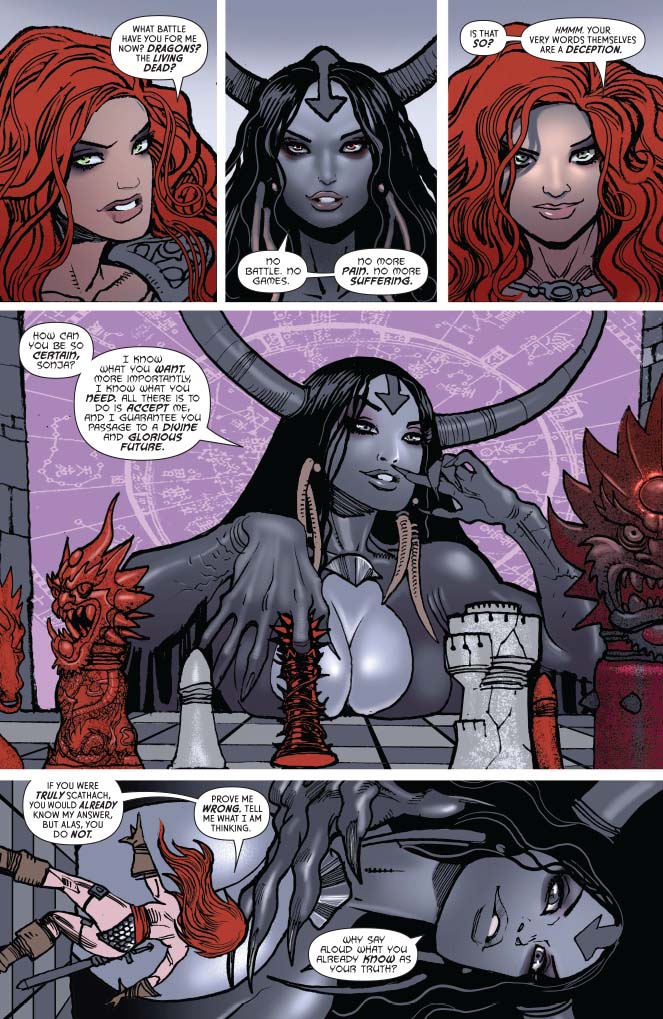 Sonja looks like she will need all the help she can get as she tests her skills of survival in a Godless place where only the strongest survive.