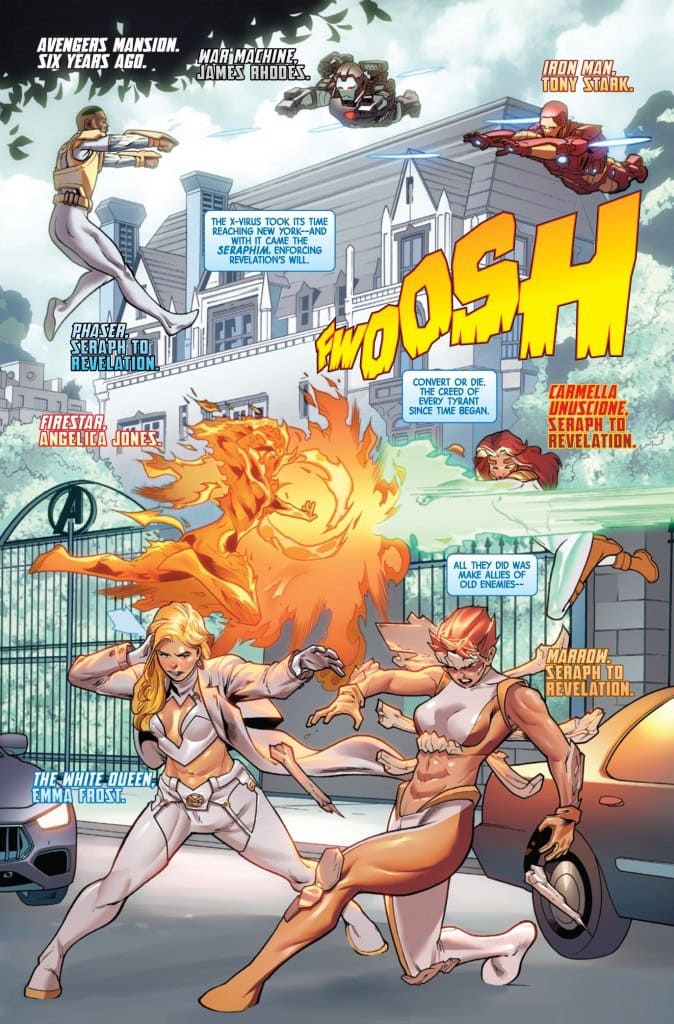 COLD AS FROST, HARD AS IRON! X YEARS LATER, after 3K’s devastating terrorist attack cost Tony Stark and Emma Frost everything, the Heartless Queen returns to what remains of her past. Secrets hide in the ruins of New York. The HELLFIRE CLUB has a dangerous new leader.