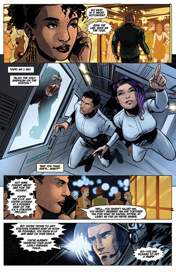 The hunt for the stolen STALVODA formula has led Bond into orbit, where he meets a man from the project’s shady past — but 007 soon learns he’s not the only killer in space. Meanwhile, back on Earth, Moneypenny suddenly finds she’s also a target!