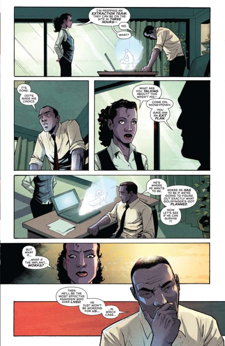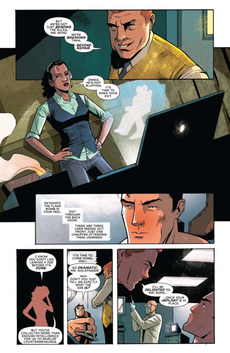 James Bond 007 #8 is out this Wednesday, and we’ve got a preview of the issue for you here which sees Bond receiving a “reward implant” courtesy of Mr. Auric Goldfinger; check it out…