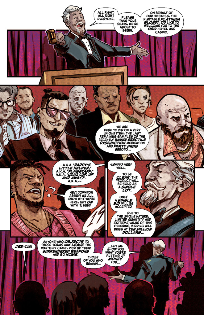 It’s the final, deadly showdown between Jennifer Blood and Platinum Blondi, vice queen of Vegas, who wants revenge on Blood for killing her husband. Except it was Jennifer Blood’s mom who killed her husband, if she killed him at all, which maybe she didn’t! (Look, it’s complicated…)