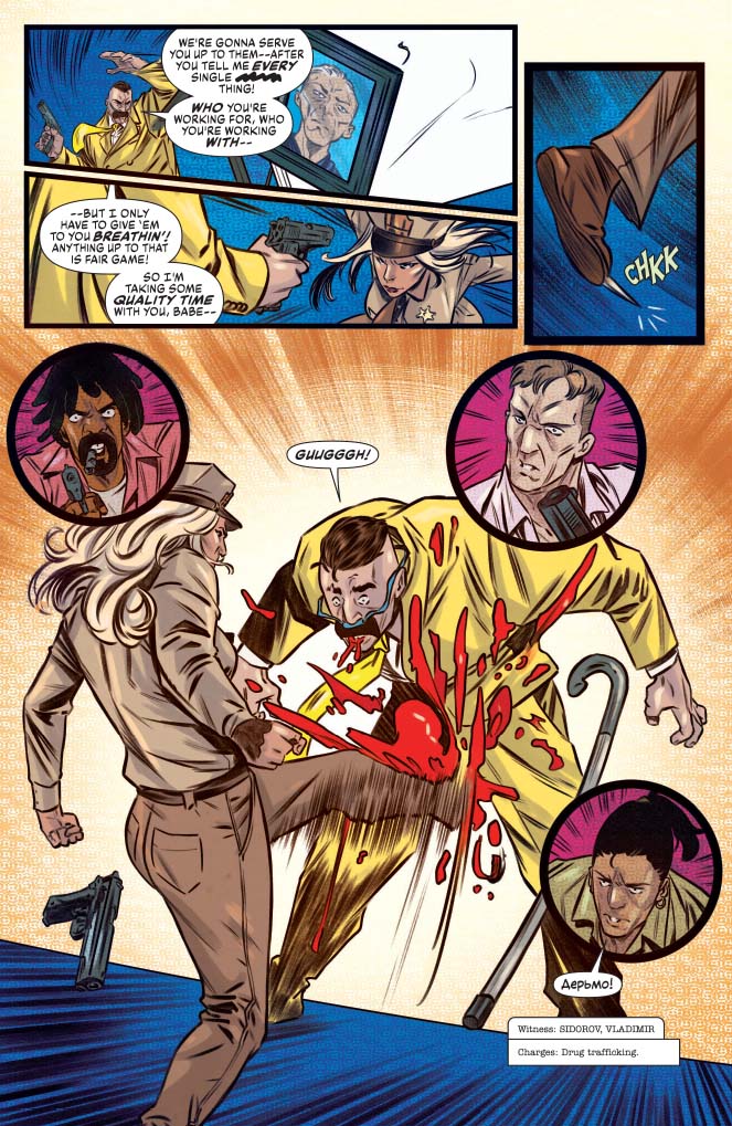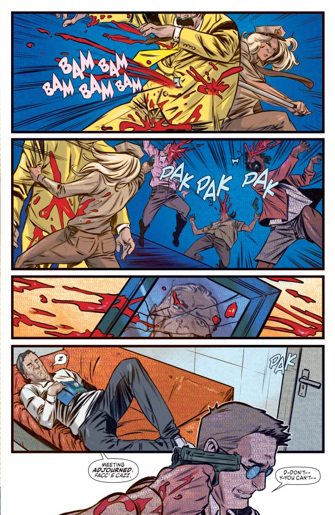 The bullet-ridden, body count-shattering conclusion! Sheriff Giulietta Romeo knows the real identity of Jennifer Blood–but Jennifer has turned the mob bosses of Bountiful against her, so the real question is, can she live long enough to prove it? With a final showdown imminent that neither Jennifer nor Giulietta may survive, we can make you only one guarantee about this issue: There will be Blood. By FRED VAN LENTE (Wolverine) and VINCENZO FEDERICI (Red Sonja)!