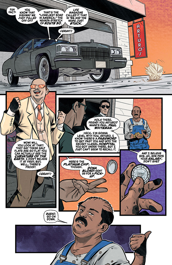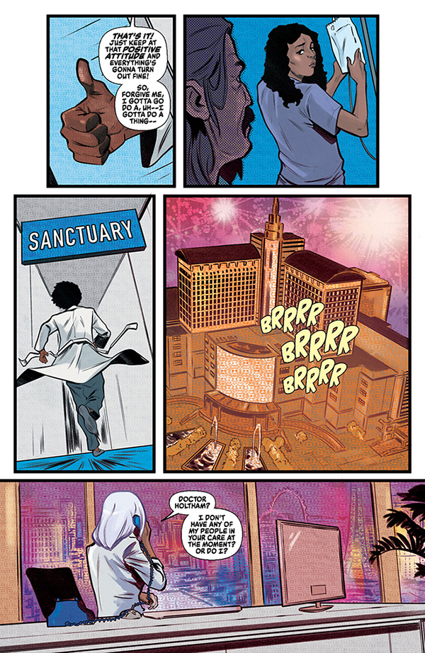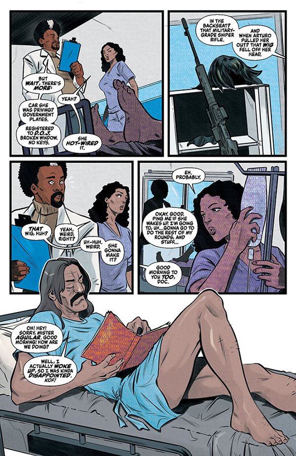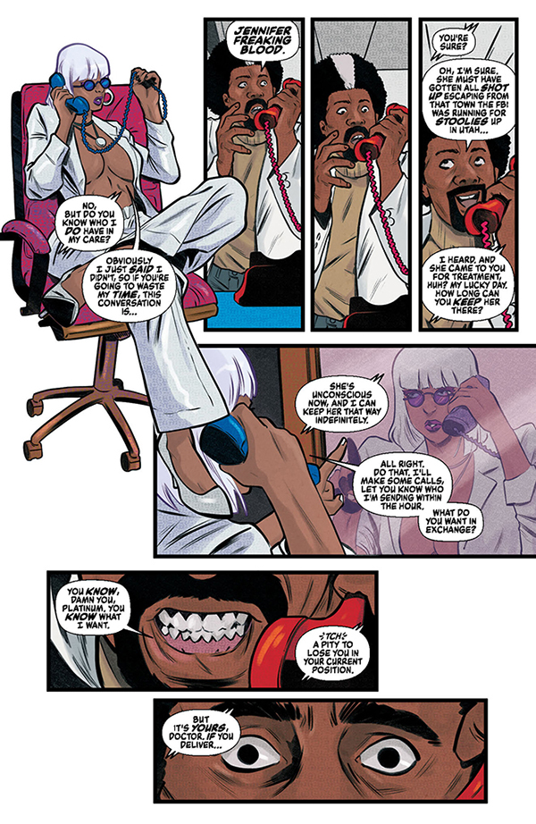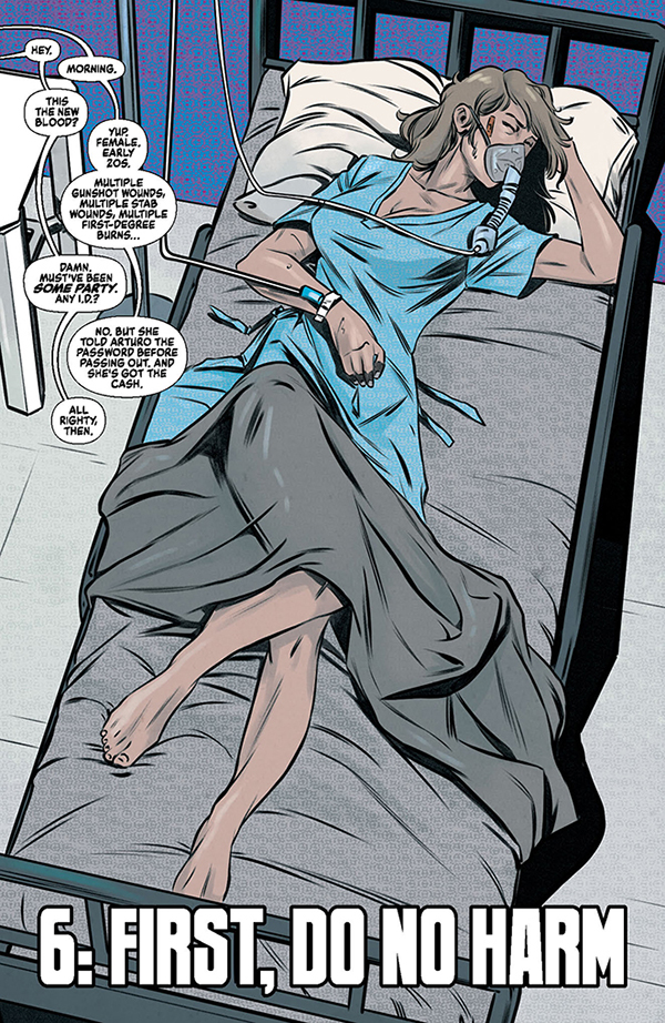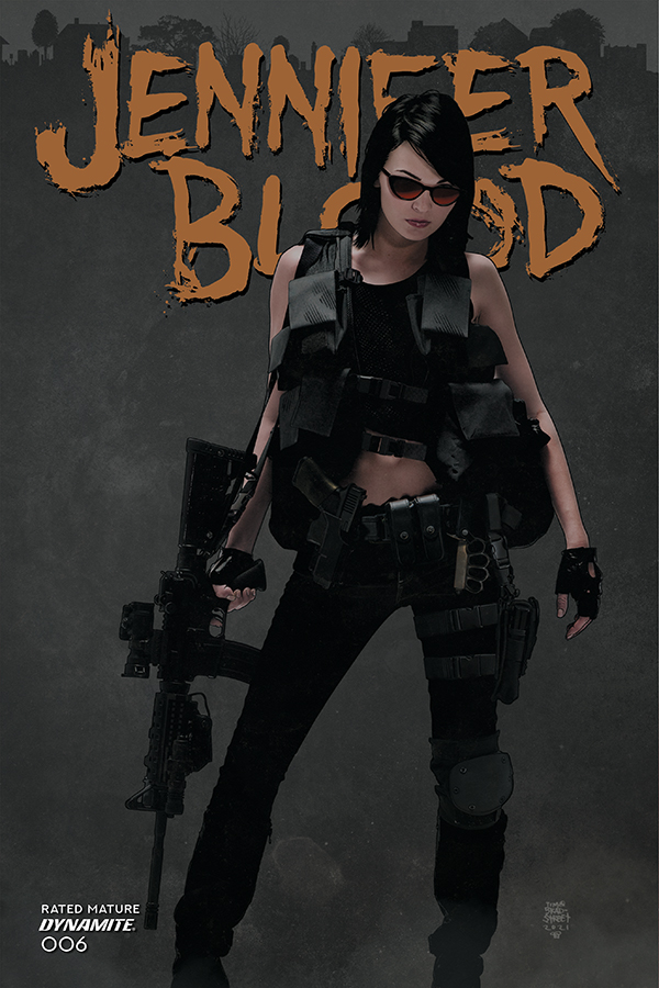 The climactic chapter in the latest Jennifer Blood epic begins when a mysterious woman staggers into an underworld medical clinic and collapses from her injuries. The crooked head surgeon is convinced that he has Jennifer Blood herself — the most wanted woman in the world — sedated and under his control, and he’s ready to sell her to the highest bidder. But another patient in the clinic is a legendary hitman on his last legs, and he has other plans for Jennifer Blood. When they team up, the trauma ward will overflow!