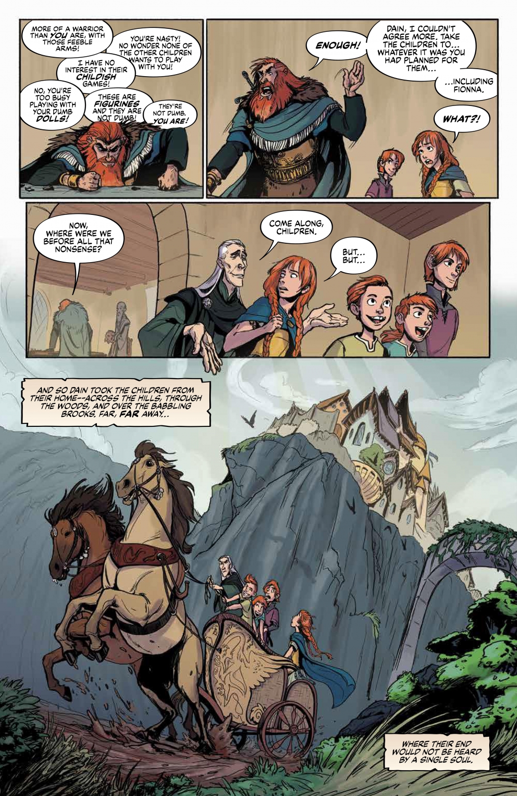 Writer Andre R. Frattino (Simon Says: Nazi Hunter) spins a tale about the Celtic myth of the Children of Lir. Dain, a nefarious, power-hungry magic user and Lir’s brother-in-law, plots to steal the throne from Lir and his family by turning Lir’s children into swans and ascending the throne himself. Fionna, the oldest, wants only to gain revenge against Dain, in order to continue her quest to help her father secure his fierce and fearsome legacy as a renowned warrior. While Fionna attempts to find a way to break their curse, the swan-children are forced to wander near and far for nearly a thousand years. They endure much hardship and sorrow, but face the curse together…finding solace and strength in one another.