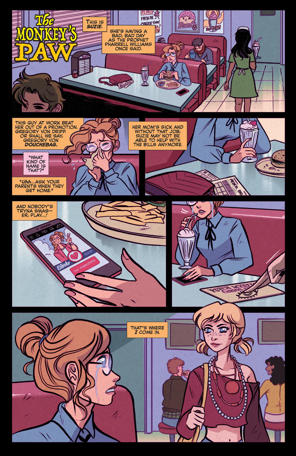 Teen Jinx Holliday is Riverdale’s go-to babysitter. The (often unruly) kids that she watches over always change, seemingly for the better. The key to her success? Her book of unique fairy tales, all of which tell a moralistic story—usually grim, gruesome ones that frighten the children with Jinx as the star of each and every one. What sinister, I mean, serious lessons will she teach her wards?