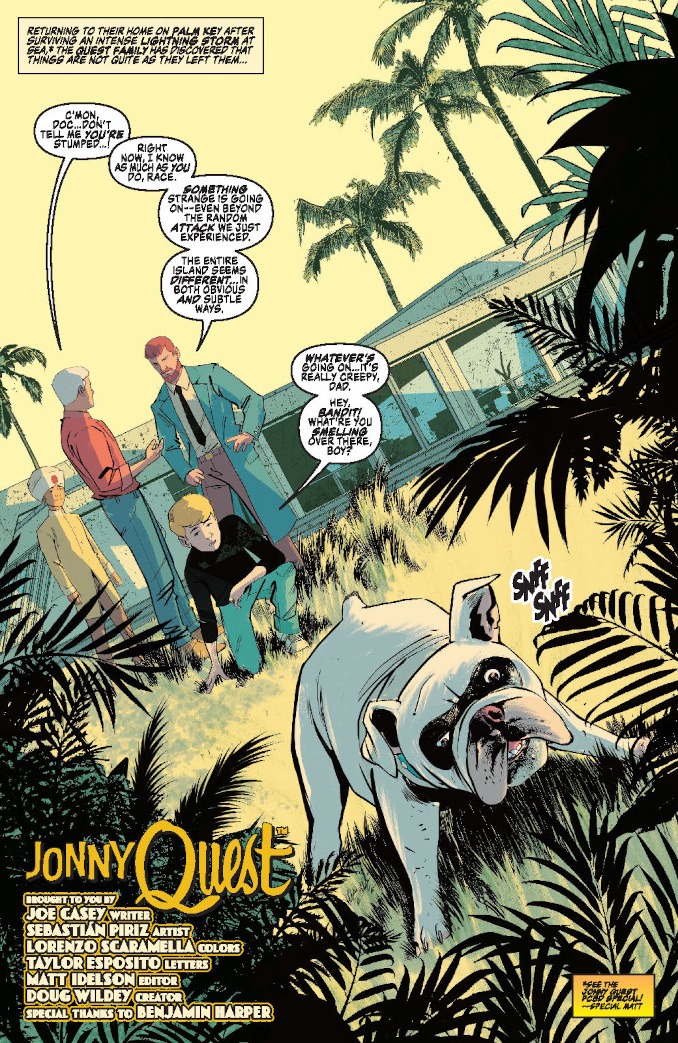 Superstar writer Joe Casey (Superman, Ben 10) and powerhouse artist Sebastián Piriz (We Ride Titans, Deadweights) join together to bring you the brand-new tales of Jonny and the Quest team that the world has been waiting for — all enhanced by fully frameable covers from Chad Hardin, Jae Lee & June Chung, Tom Raney, Bob Layton, and Richard Pace!