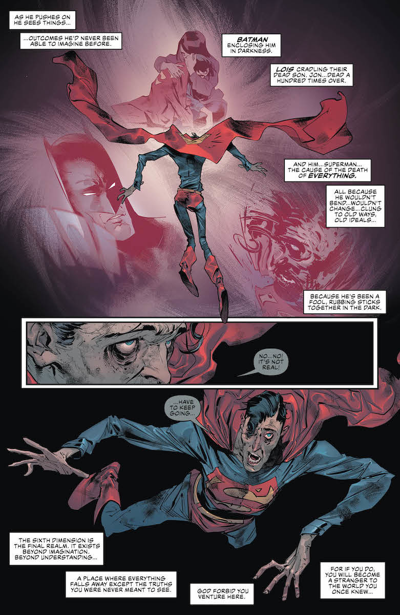 The “Sixth Dimension” storyline wraps up in this oversize issue as Superman faces down the World Forger to save the Justice League! Can Superman withstand the might of a being that can create worlds from nothing?! Plus, with the Justice League away, Mr. Mxyzptlk’s been wreaking havoc! Can anyone on Earth stand up to the fifth-dimensional menace?