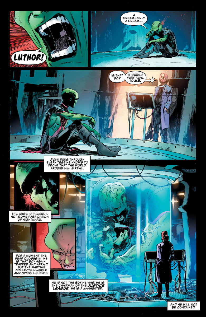 Eons ago, the Monitor, the Anti-Monitor and the World Forger stopped the rise of Perpetua—but can they overcome billions of years of mistrust to work together and do it again? Plus, Lex Luthor’s offers across the DC Universe haven’t gone unnoticed—Martian Manhunter is aware of “the Offer.” And J’onn J’onnz will pay the price.