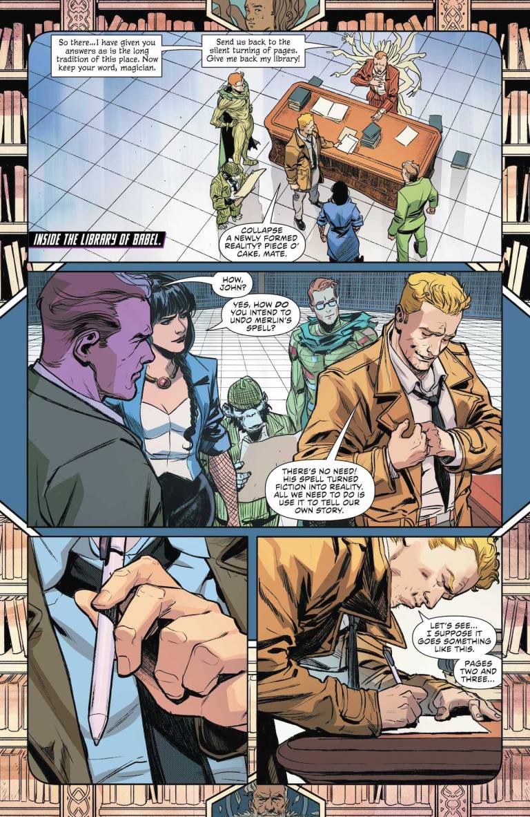 Meanwhile, the Justice League Dark must rely on the wit of John Constantine to make their way back to the real world, which is slowly losing its grip with Merlin ready to remake it in his image. Little do they know, a knight from the sorcerer’s past is the key to stopping him once and for all. Will she survive long enough to help our heroes?