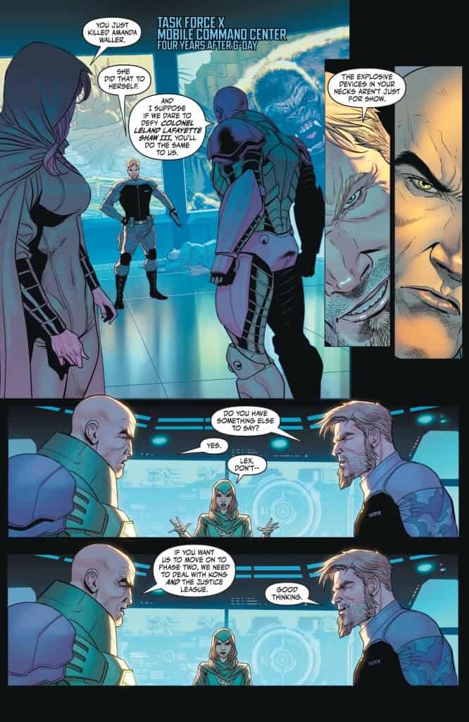 In the aftermath of the shocking ending of the last issue, Task Force X must re-evaluate their mission in Hollow Earth as they explore an unknown world. Meanwhile, the Justice League comes face-to-face again with Kong — but it’s not the reunion they are expecting!