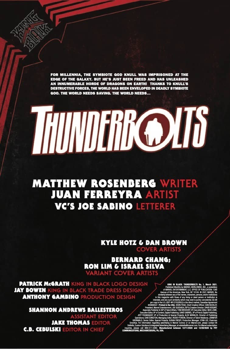 King in Black: Thunderbolts #1 goes on sale on January 13th, priced $3.99.