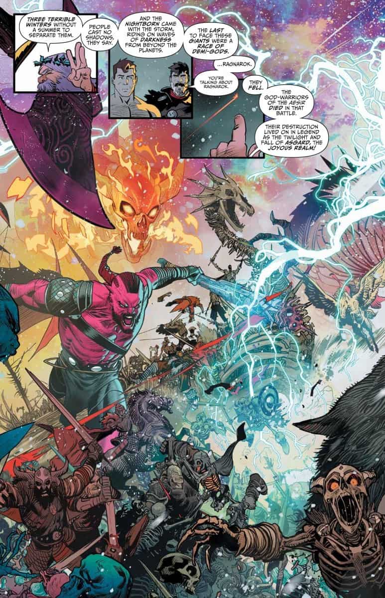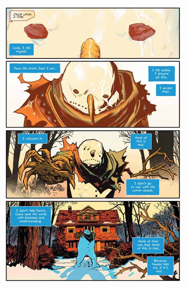 The smash-hit from superstars Grant Morrison (Green Lantern, Happy!) and Dan Mora (Once & Future) returns with this special collection of holiday-themed stories. Klaus must help an absentee dad-turned-snowman make amends before melting away for good. And probably before he’s defeated by a pantheon of Norse Gods and their minions. All in a day’s work for Santa Claus. And then see Klaus in the role of father himself, as he takes in Joe Christmas as an infant, and guides him through all of life’s wild adventures in a holiday calendar-inspired comic, presented in the widescreen tradition of Grant Morrison’s 2001 New X-Men Annual. Collects Klaus and the Crying Snowman #1 and Klaus and the Life & Times of Joe Christmas #1.