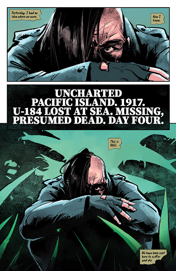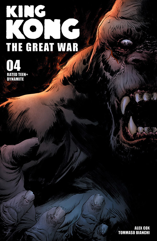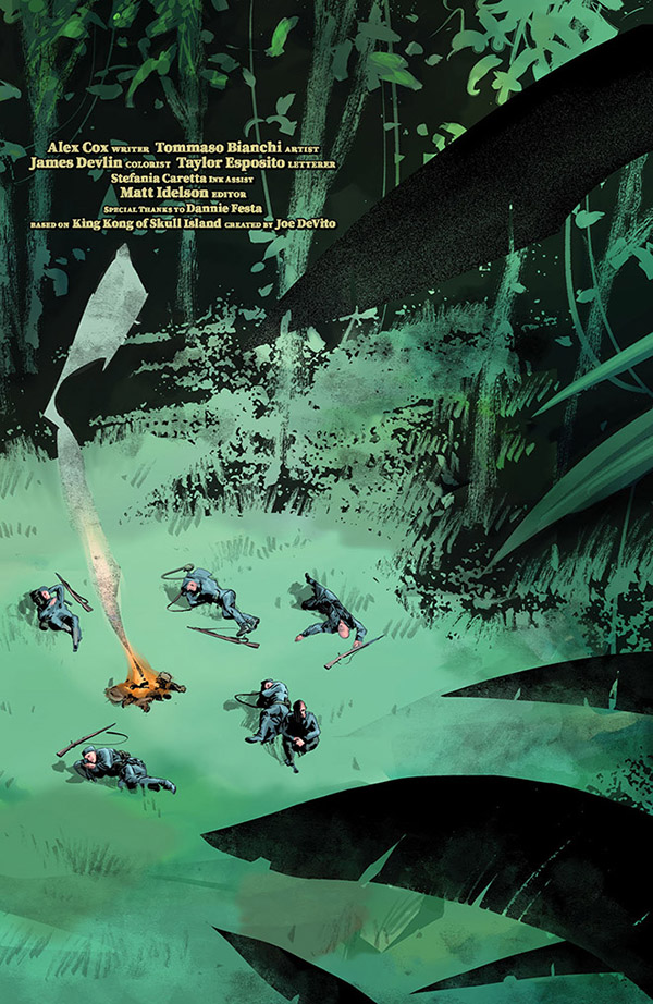 Deep in the jungles of Skull Island, the crew of U-184 survives (as best they can) under the constant threat of grisly death, ferocious prehistoric predators, and, never far behind them… KONG! The pressure mounts as they are steadily overtaken by fear, violence, and disease — but hope flickers in the distance! Will they find the strength to persevere? Or will their bones be added to the endless cascade of human remains that Skull Island leaves for posterity? Only acclaimed author ALEX COX and superstar artist TOMMASO BIANCHI know for sure — but soon all will be revealed!