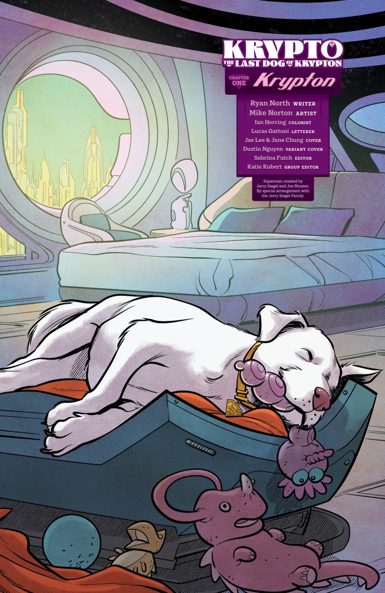 ALL-STAR WRITER RYAN NORTH CRASH-LANDS KRYPTO ON EARTH! There will come a day when Krypto stands beside Superman, helping him fight off monsters, aliens, and supervillains — a day when this dog will save his adoptive world thanks to the incredible powers granted him by Earth’s strange yellow sun. But he’s not there yet. Today, Krypto is a normal puppy on Krypton, spending each happy, snoozy, endless day alongside his family: Jor-El, Lara, and baby Kal-El. But when a rocket test goes wrong, Krypto finds himself lost in space — and soon crash-landing, all alone, on a strange and alien world called Earth.
