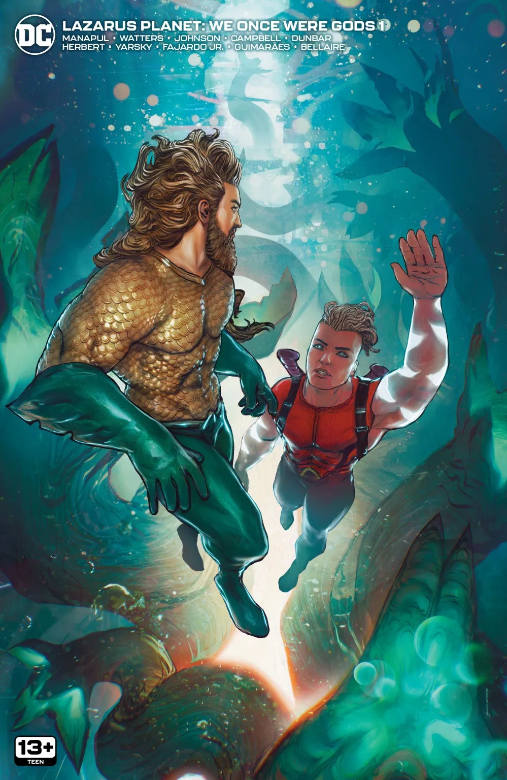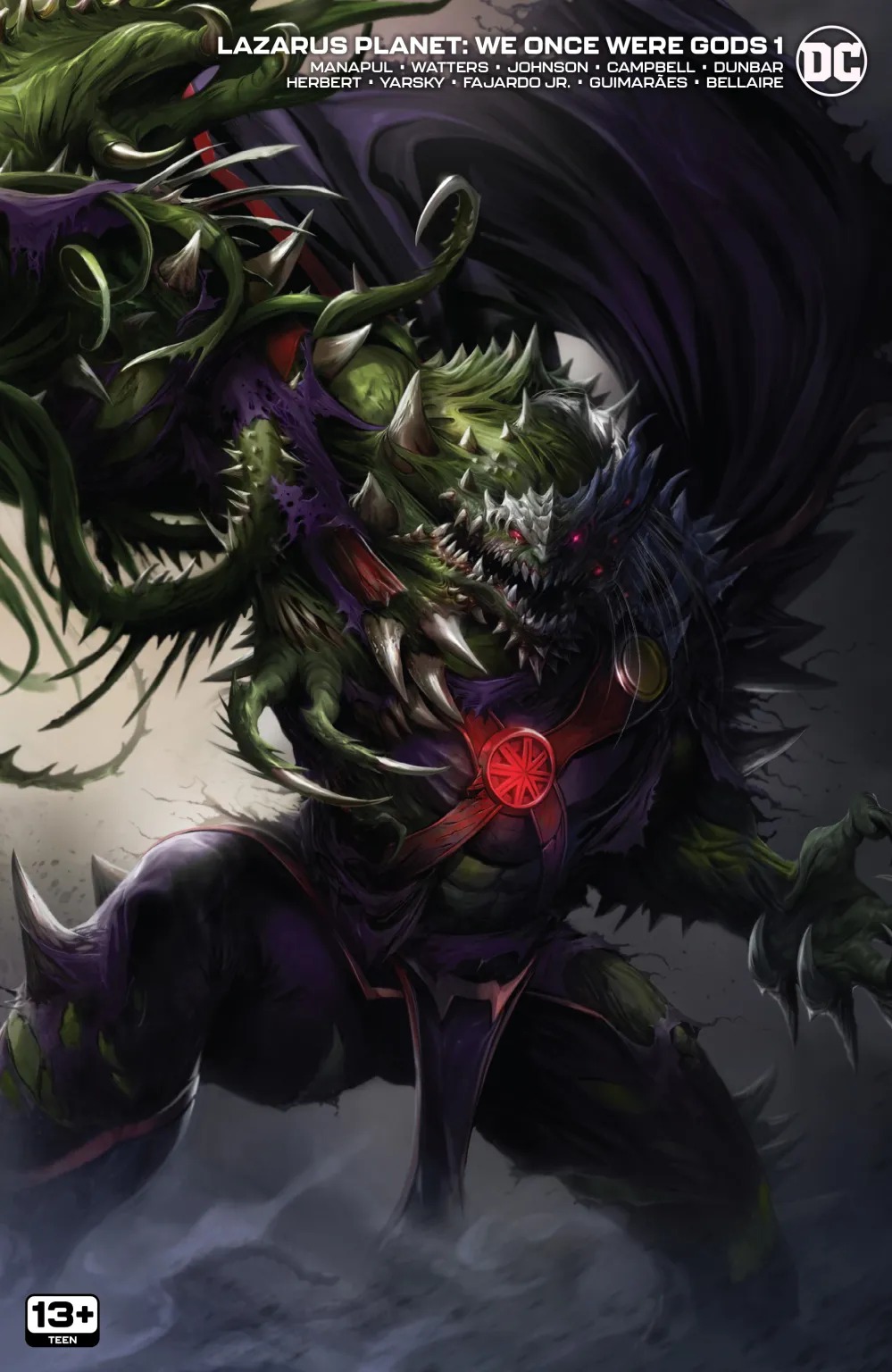 As the Lazarus rain beats down upon planet Earth, human beings are only a fraction of those affected by this transformative upheaval—enter: We Once Were Gods. This series of vignettes explores Lazarus Planet’s effects across the many extraordinary locations and creatures in the DC Universe, and like their human counterparts, these beings are in for some big changes. Can Themyscira survive the resurrection of every invading army that ever graced its shores? Will Martian Manhunter survive a psychic link to a Doomsday nest? What happens when the monsters from the Trench gain the ability to breathe air? And look out, Shazam Family…the Rock of Eternity is about to get rocked.