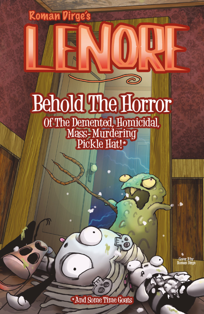The world’s cutest cadaver! The most lamentable leading lady! The gruesome goth girl herself! The gothic icon Lenore returns at last, in a brand new series from creator Roman Dirge. Trapped in her house by a demented, murderous hat-pickle, Lenore is running out of time… and friends she can eat.