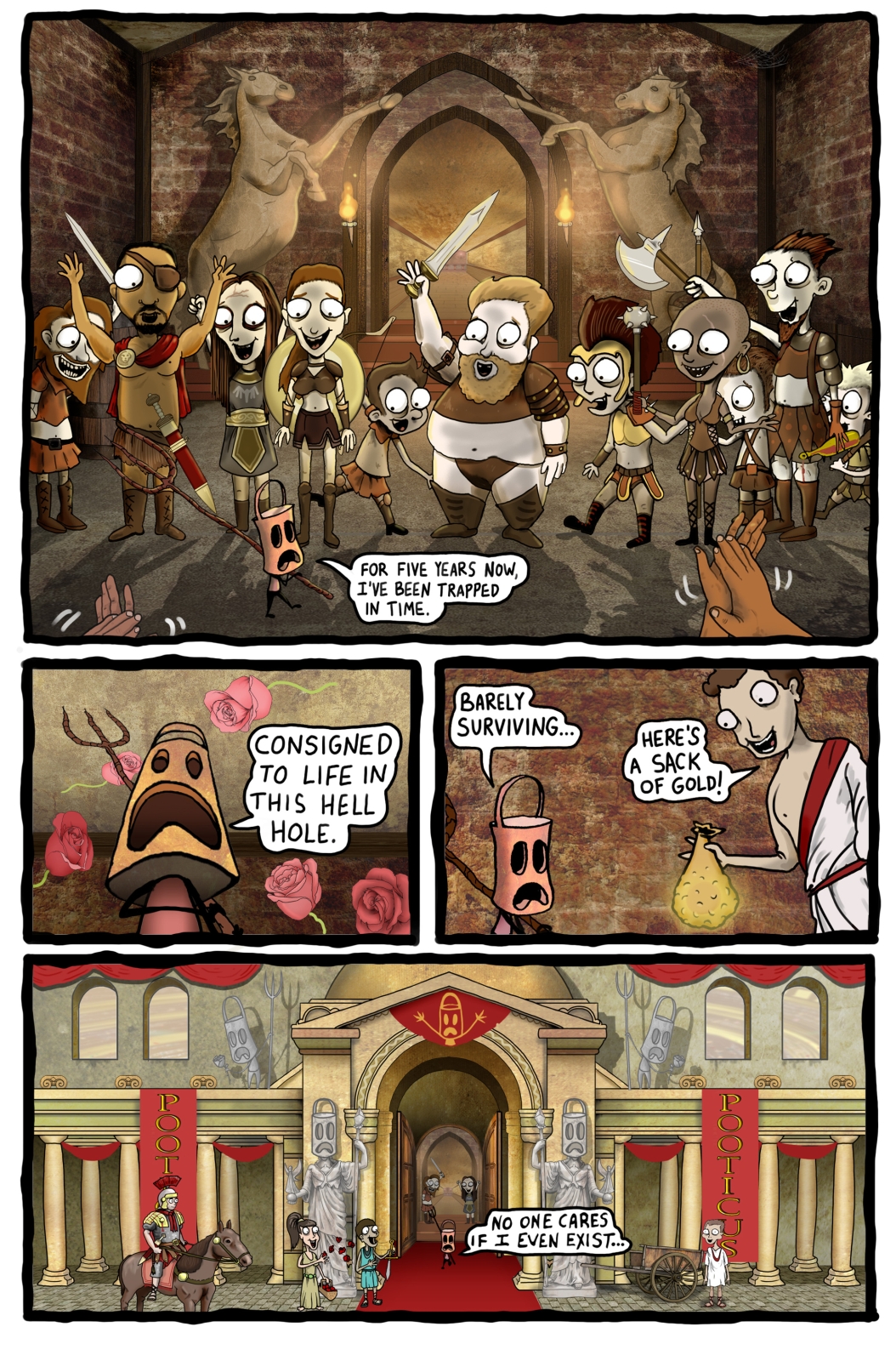 Reunited after being separated and lost across the entirety of all-history, after eating three Time Goats who’d come to save them from a demented demonic pickle hat, Lenore and co must make one last stand and do battle with a futuristic army of enraged Time Goats from the far-flung future who’ve come to Earth for revenge!
