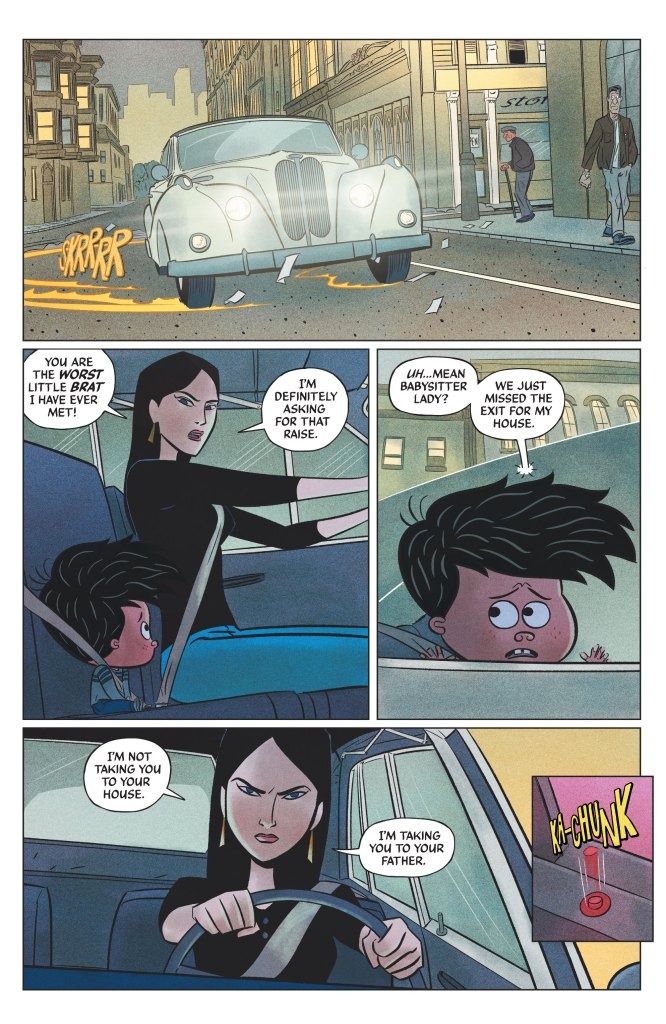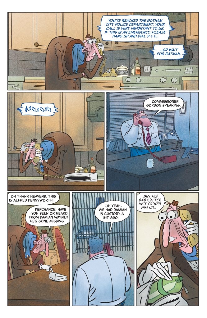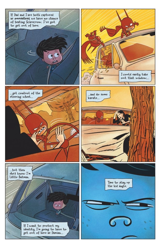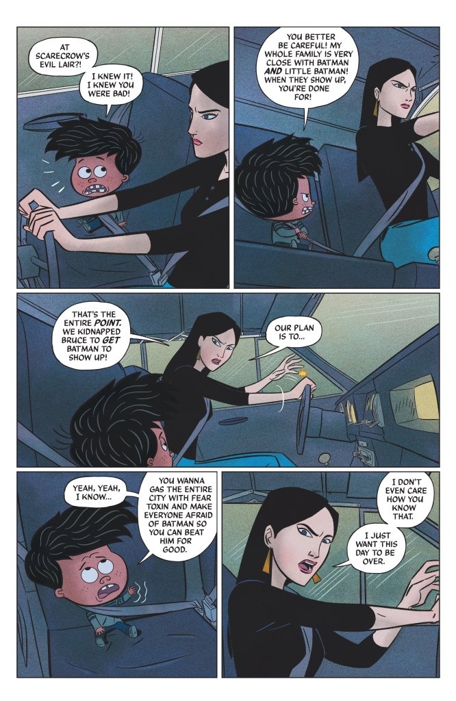 Don’t miss the climactic conclusion to Little Batman’s first month! Damian Wayne, a.k.a. Little Batman, has all the information he needs to bring down Scarecrow but now finds himself trapped in the claws of a nefarious foe…his own babysitter! If Little Batman wants to bring Scarecrow down and save his father, he’s gonna have to get out of this situation the only way a kid can: by driving her crazy.