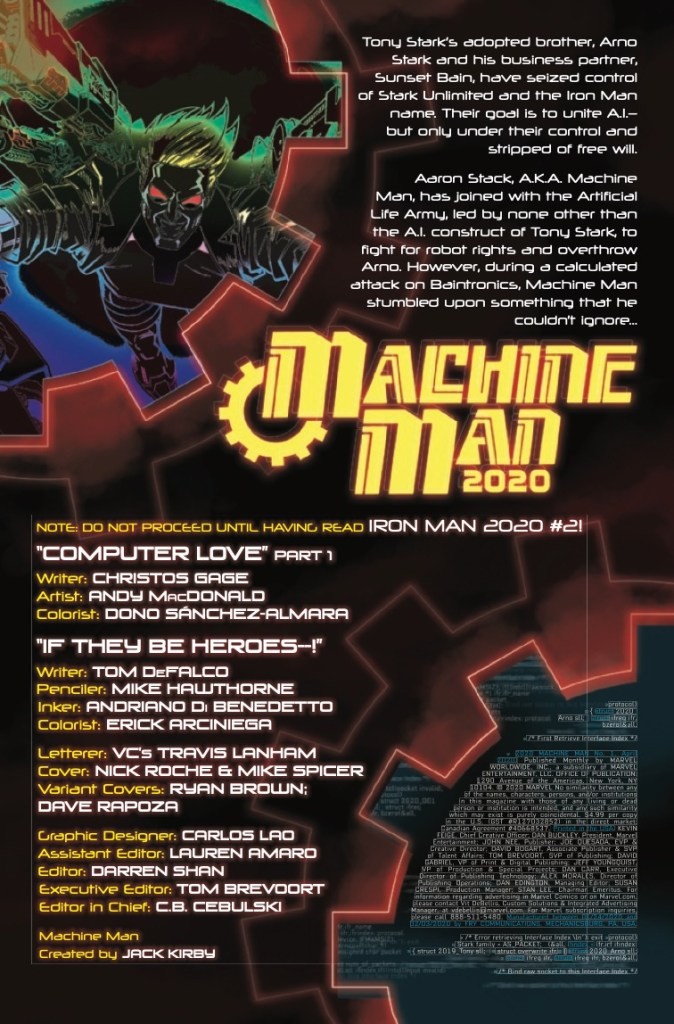The A.I. uprising has begun, and Machine Man finds himself torn about his place in the revolution! As the battle rages around him, will Machine Man aid mankind’s fight for survival or join his robot brethren in ushering a new age? Plus, when faced with a figure from his past, Machine Man must decide-is it time to follow his programming or his heart? Don’t miss out on this epic adventure from Christos Gage and Andy MacDonald! Plus, revisit Machine Man in 2020 with legendary creator, Tom DeFalco!