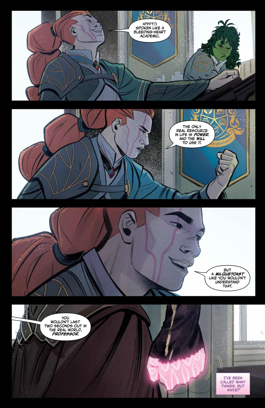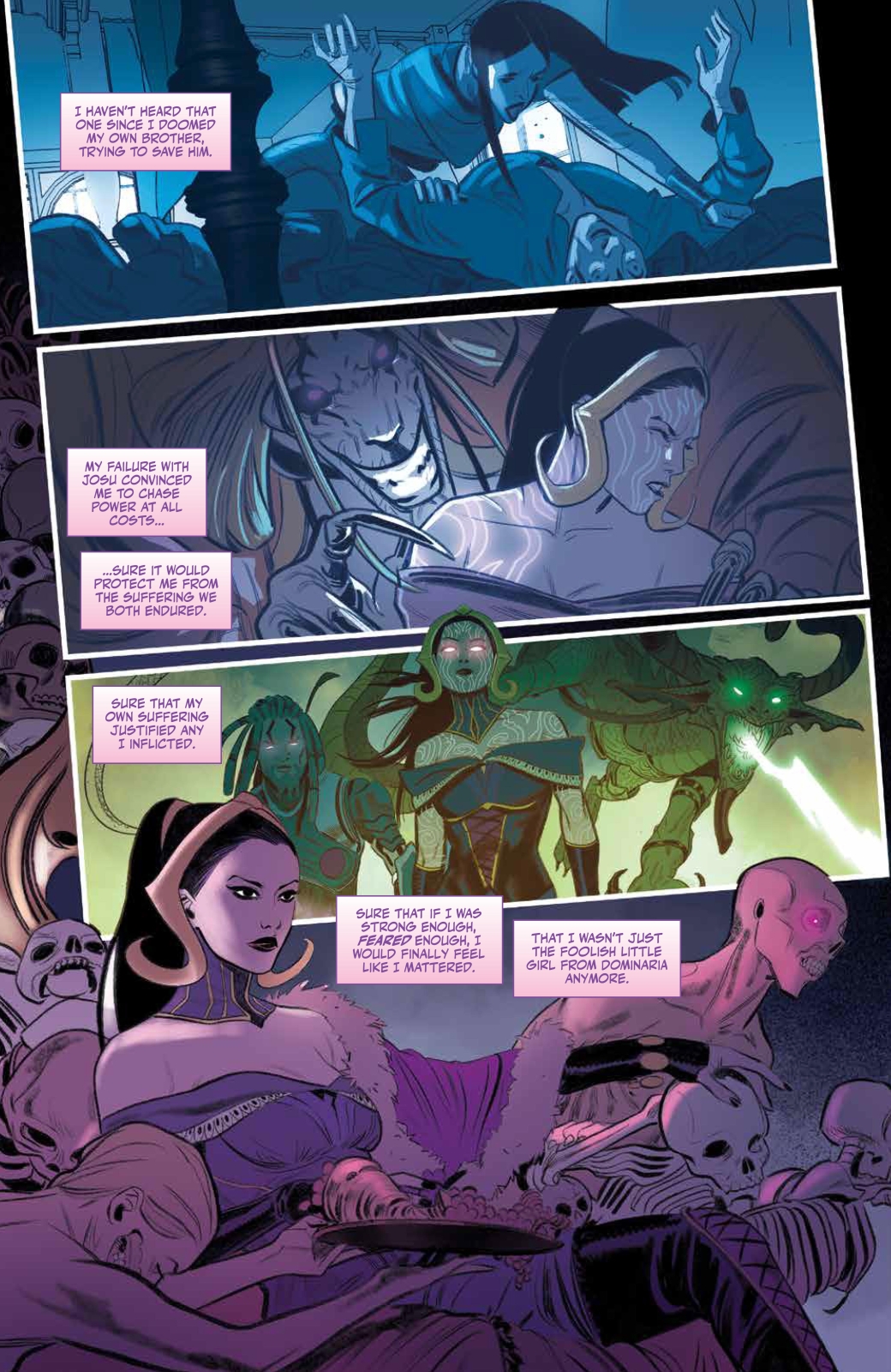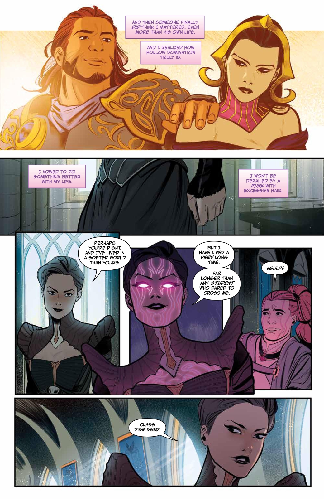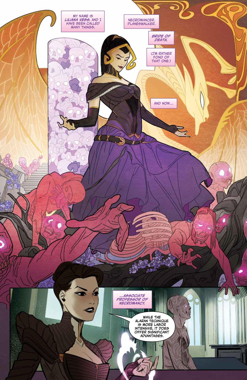 Delve even deeper into the Magic: The Gathering universe with comic and screenwriter Mairghread Scott (Transformers, Guardians of the Galaxy) and artist Fabiana Mascolo (Firefly: Brand New ‘Verse)! While our heroes have many dangers to face throughout the multiverse, the powerful Necromancer Liliana Vess returns to her new home as a professor at the greatest college of magic in the Multiverse. But she doesn’t return alone. Sensing the presence of a distant planeswalker calling for help… one with the power to save, or destroy, entire planes, puts her on a collision course with the diabolical machinations of the Tezzeret, the Master of Metal…