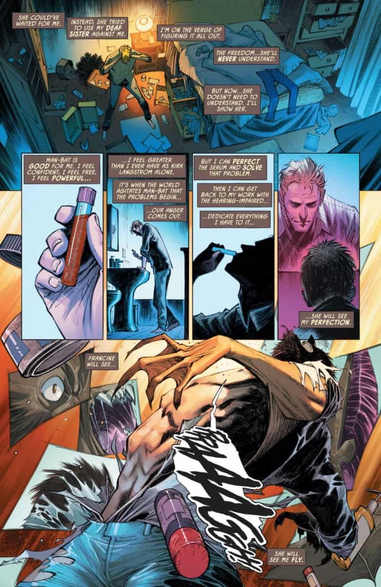 For years Kirk Langstrom has struggled with his monstrous alter ego, Man-Bat, and the serum that transformed him. But he’s finally hit rock bottom following a devastating setback, and he’s going to take his anger out on every single citizen of Gotham City. Will the combined might of Batman and the GCPD be enough to stop Langstrom once and for all? Or will this just be the start of Man-Bat’s devastation?