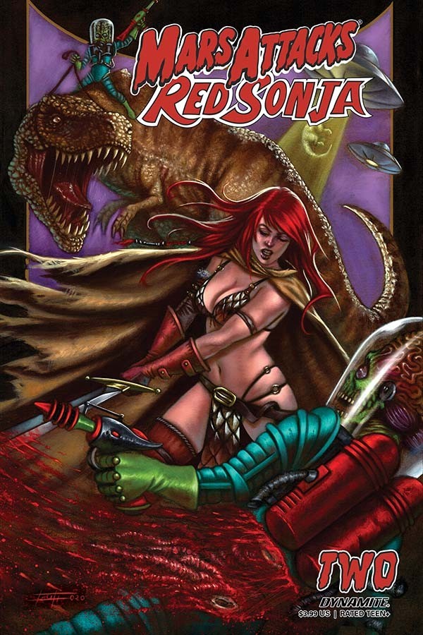 Dynamite Entertainment’s latest crossover series Mars Attacks Red Sonja continues this Wednesday with the release of the second issue, and we’ve got the official preview for you right here; check it out…