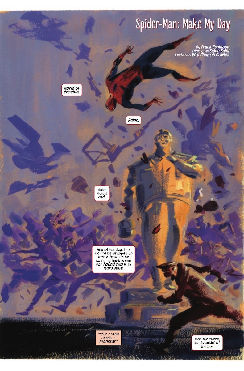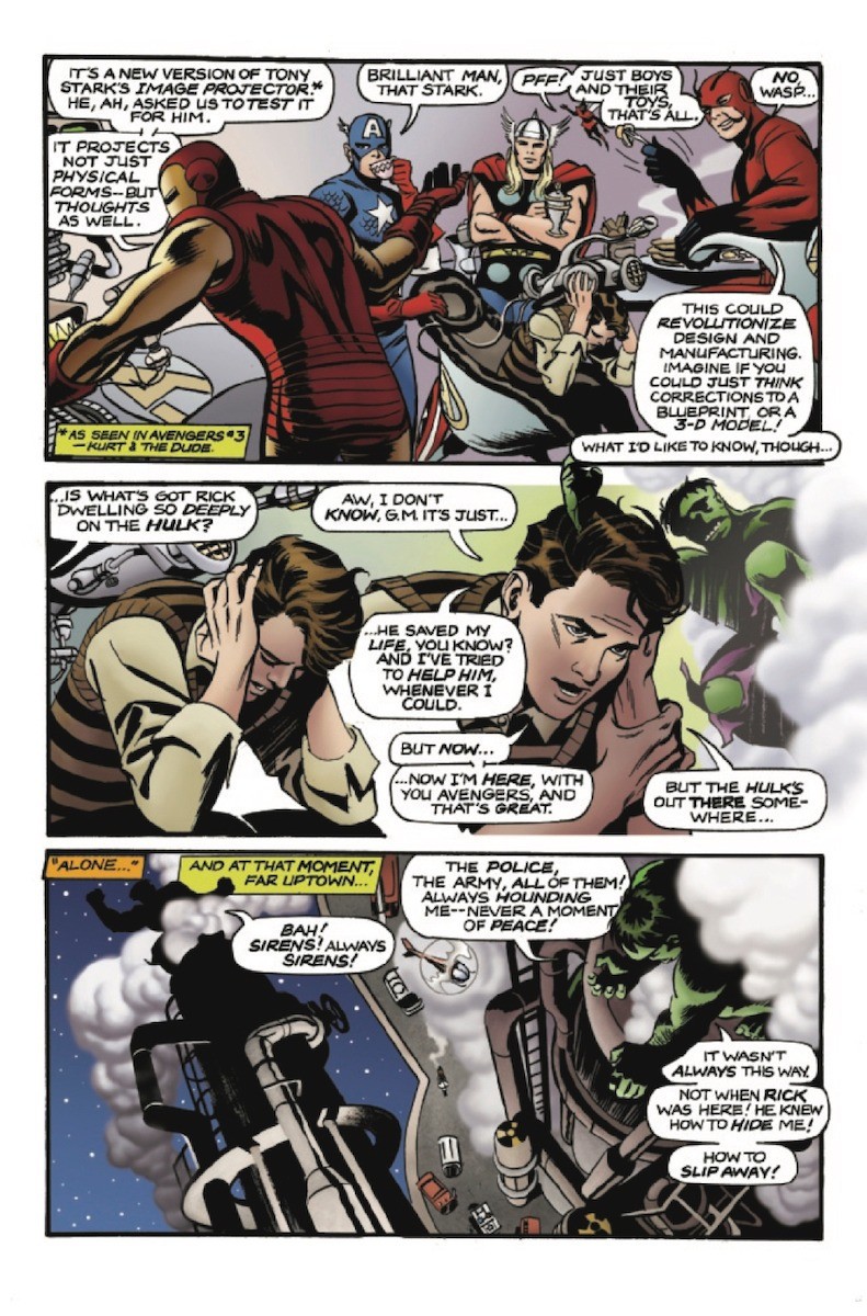 This inaugural issue kicks it all off with superstar artists Frank Espinosa (Rocketo, Looney Tunes) telling an unusual Spider-Man story and Steve Rude (Nexus), teaming up with Kurt Busiek (Marvels, Avengers) for an Avengers story, framed by Alex and Steve Darnall (Uncle Sam, Marvels) presenting a tale of the dread dreamland Nightmare, and his threat to the entire Marvel Universe…and possibly beyond.
