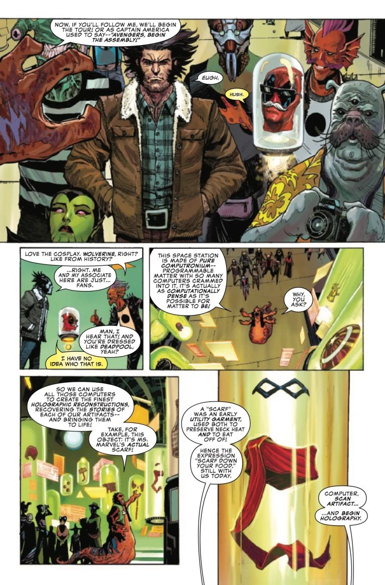 CELEBRATE MARVEL’S 50,000TH COMIC-BOOK RELEASE! In the far future of the year 50,000, the exploits of the heroes of the Marvel Age are the stuff of legend, half remembered but still celebrated! Come with us now on a tour of the greatest museum in all the cosmos, in which the few surviving relics of those bygone days have been assembled. Each piece tells a unique story – about the Contest of Champions and how it wrought an end to the Age of Heroes, about the greatest triumph of Ms. Marvel and the final, secret exploit of Excalibur! And more! Marvel’s greatest storytellers gather to commemorate the whole of Marvel history in a once-in-a-lifetime celebration!