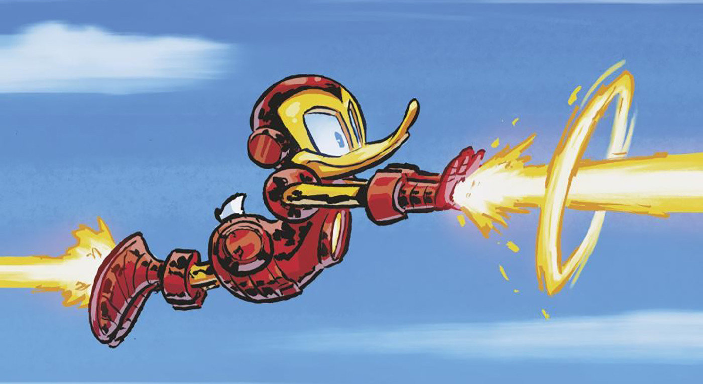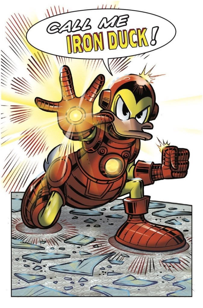 Marvel & Disney: What If…? Donald Duck Became Iron Man #1 hits comic book shops and digital retailers this coming Wednesday, and you can get yourself an early sneak peek at the crossover one-shot with the official preview below…