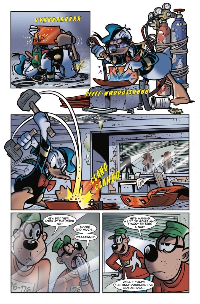 FROM FOWL TO SHELL-HEAD! Inspired by the very first appearance of IRON MAN in TALES OF SUSPENSE #39, DONALD DUCK finds himself in the clutches of the BEAGLE BOYS, forced to build a machine designed to crack into his UNCLE SCROOGE’s Money Bin! Donald has other plans and builds the ultimate suit of armor! Can the fearless fowl foil the plans of the Beagle Boys and make it to his date with DAISY DUCK?