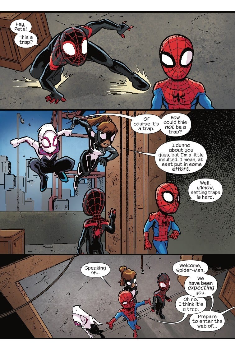 Power is a great responsibility but it’s a weight easier carried with friends! So, what happens when your friendly neighborhood Spider-Man meets up with his favorite Spider-Pals, Miles, Gwen and Anya? Hijinks, hilarity and heroism of course!