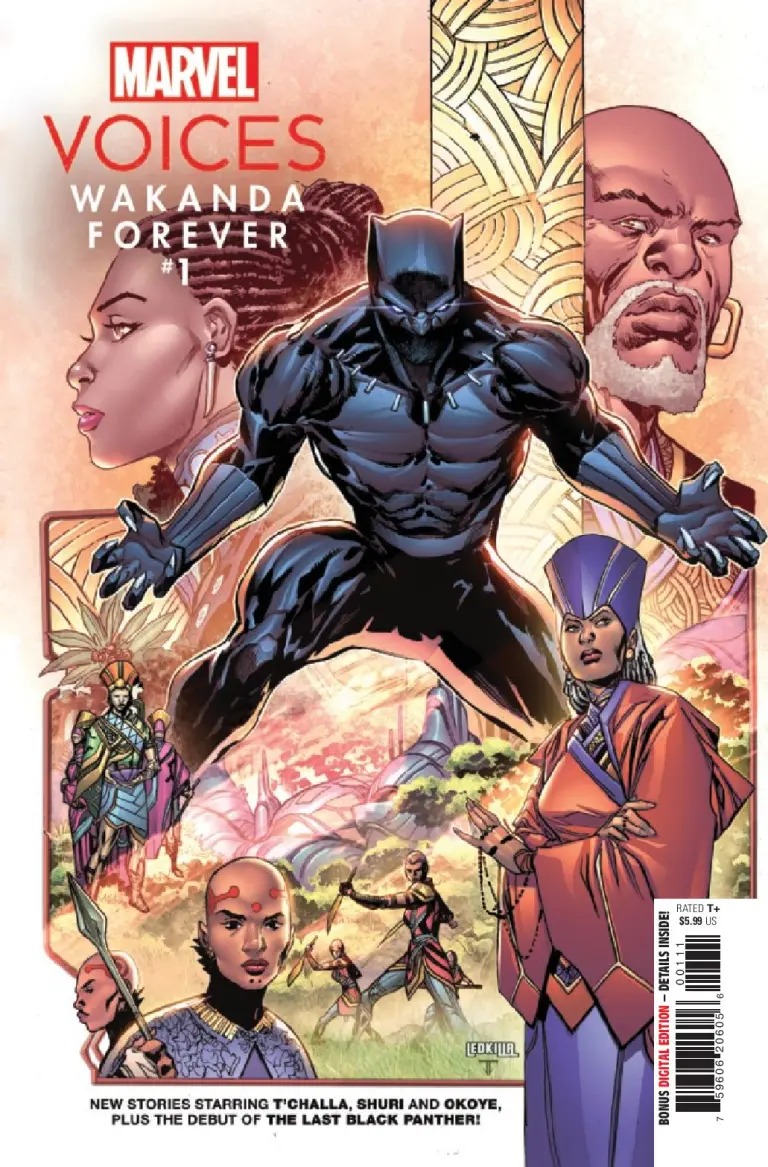 Black Panther, Shuri, Okoye and more star in all-new stories by an incredible lineup of both fan-favorite creators and talent fresh to the Marvel Universe. Join them as they grow and expand the inimitable world of Wakanda in these tales of myth, adventure, strife, and more! Including the debut of the LAST Black Panther in a story set in Wakanda’s future! Marvel’s Voices program is the first stop in getting deeper looks into the world outside your window!