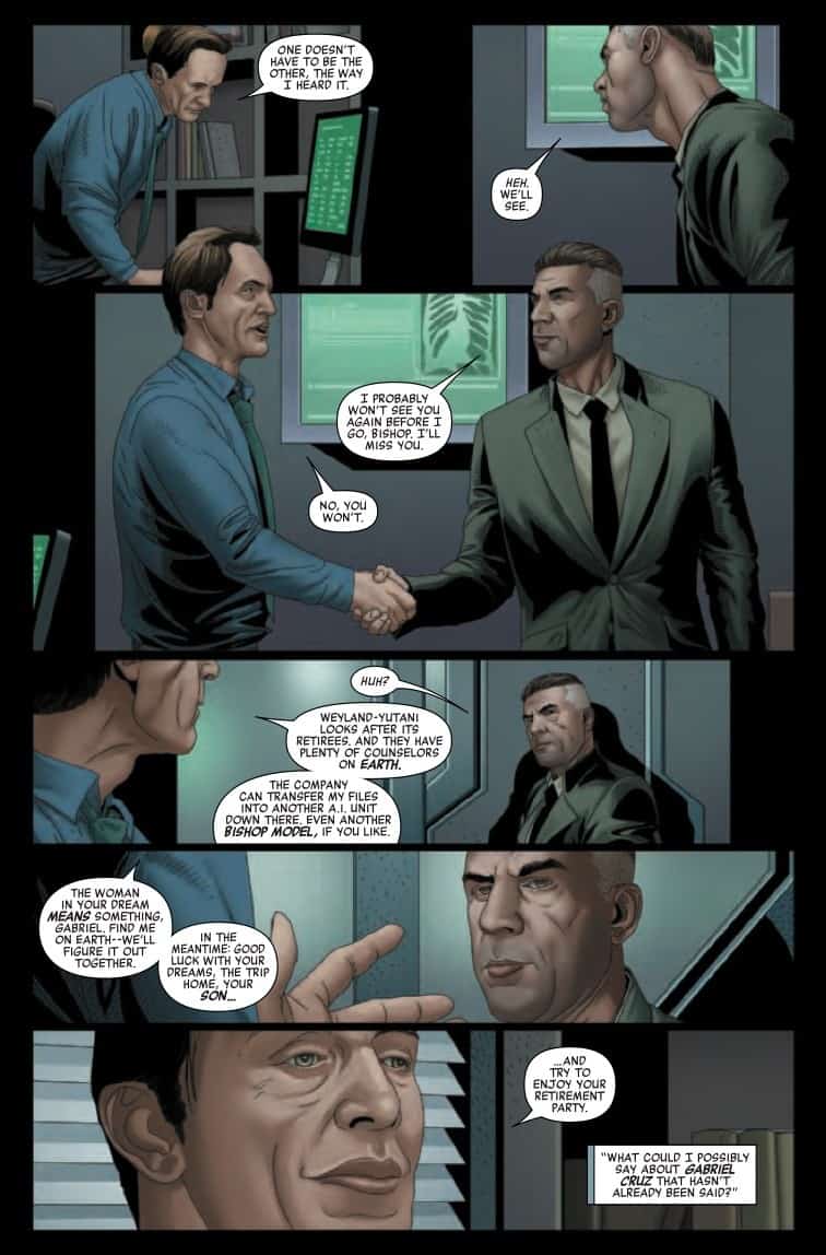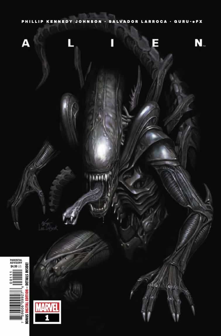 THE ICONIC CINEMATIC TERROR MAKES ITS MARVEL DEBUT! Gabriel Cruz gave his life to Weyland-Yutani–In the case of an alien attack he barely survived, almost literally! Recently retired, Cruz is trying to patch things up with his abandoned son with the help of his friend, a Bishop-model android, but his re-entry into civilian life is not going smoothly…and his encounters with the deadly Xenomorph are far from over. Phillip Kennedy Johnson and Salvador Larroca team up to tell an all-new tale of the titan of horror and science fiction that has scared audiences for decades. No one is safe. No one is innocent. And no one can hear you scream.
