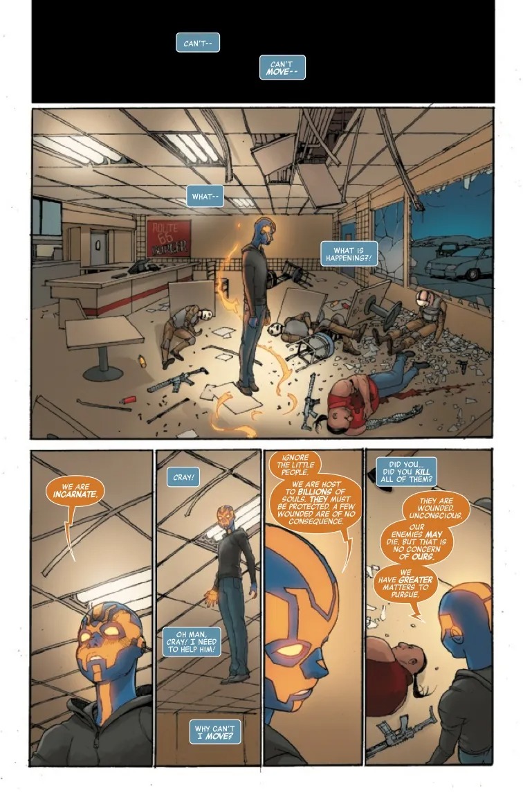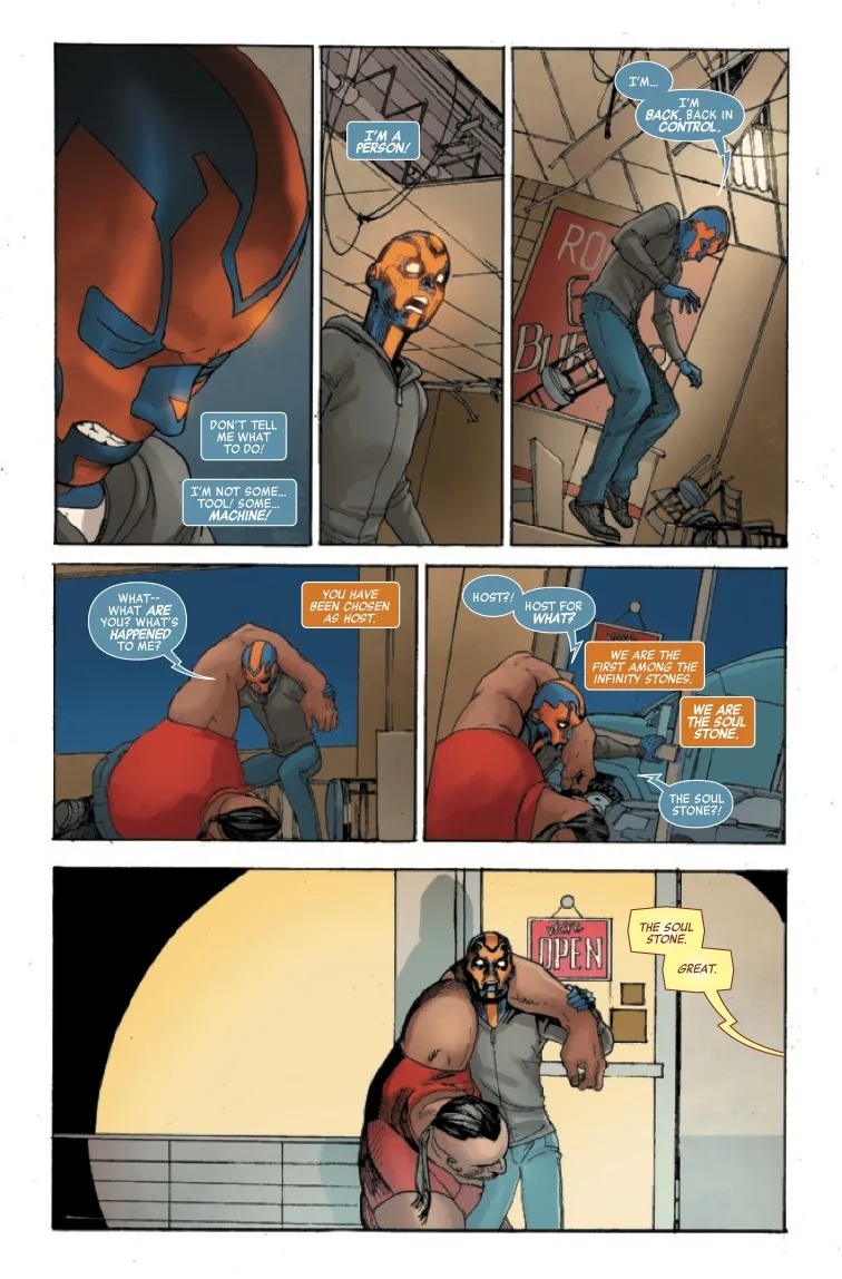 INFINITE DESTINIES CONCLUDES! The last secret of the Infinity Stones and Infinity Stone-Bearers is revealed here. Meet the new character who beats Captain America and Iron Man within an inch of their lives. What saves them? This character’s other desires.