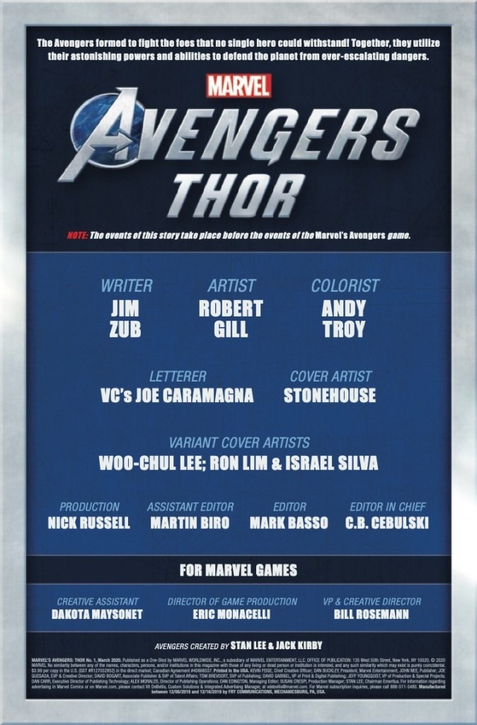 Marvel’s Avengers: Thor #1 is out on January 8th, priced $3.99.