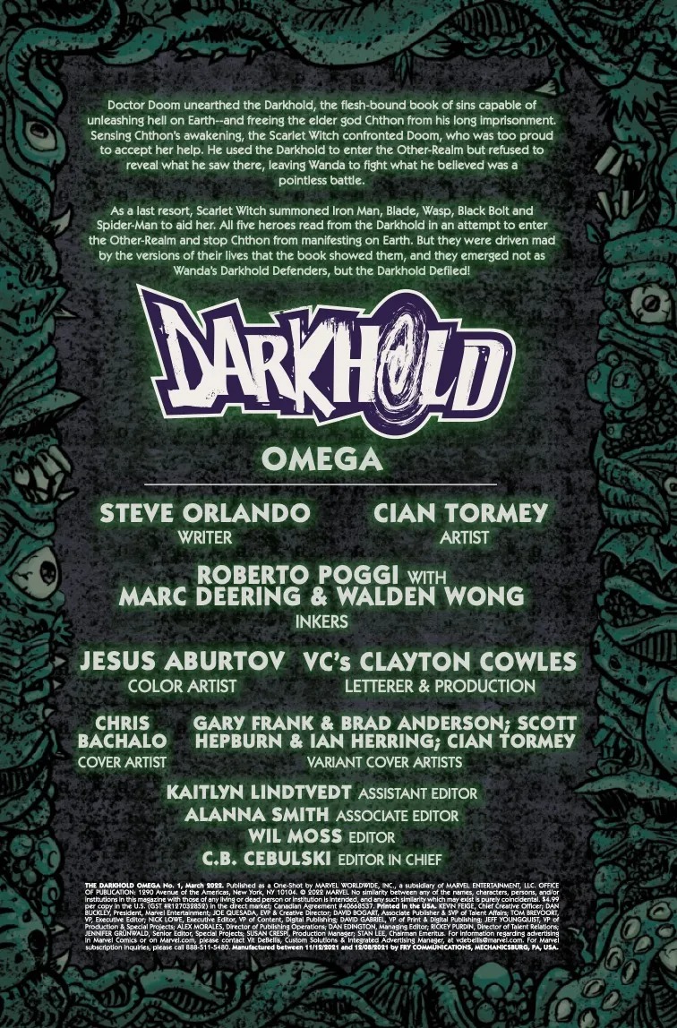 Darkhold: Omega #1 goes on sale on January 5th, priced $4.99.