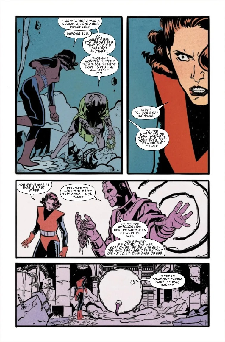 INTRODUCING THE IRREDEEMABLE WASP! Renowned colorist and writer Jordie Bellaire makes her Marvel writing debut with a story that will make you shrink in fear! Bidden to draw forth five archetypal heroes, the Scarlet Witch chose Janet Van Dyne as “the artist” – the hero whose ingenuity and strength of will could prove the lynchpin in the coming battle against Chthon. To enter Chthon’s dimension and face his darkness head-on, the Wasp read from the ill-fated Darkhold text…and it drove her insane. Now her entire life is subject to question. Janet is no stranger to mental illness; she spent years trying to redeem ex-husband Hank Pym despite his violent breakdowns. But now, she has the power to reclaim her story…and fight back. Bellaire brings you the most twisted comic you’ll read this year!